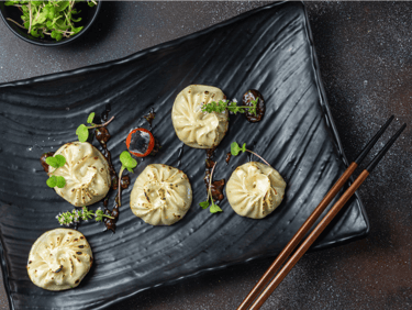 Choose from vegetable, chicken or pork filling. Served with dipping sauce and garnish.